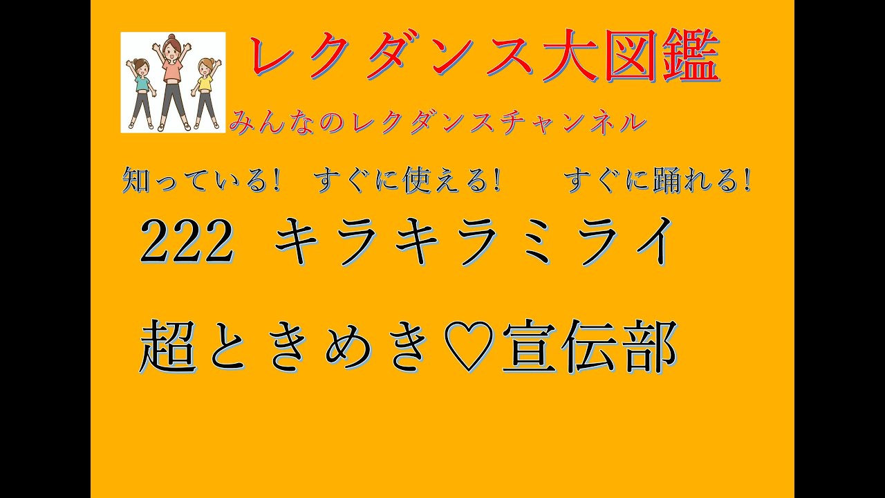 | タイトル | キラキラミライ レクダンス大図鑑222 すぐに 簡単におどれるダンスです#超ときめき♡宣伝部 #キラキラミライ #みんなのレクダンスチャンネル#レクダンス大図鑑 #カ行 #みんなのうた #BTRD |